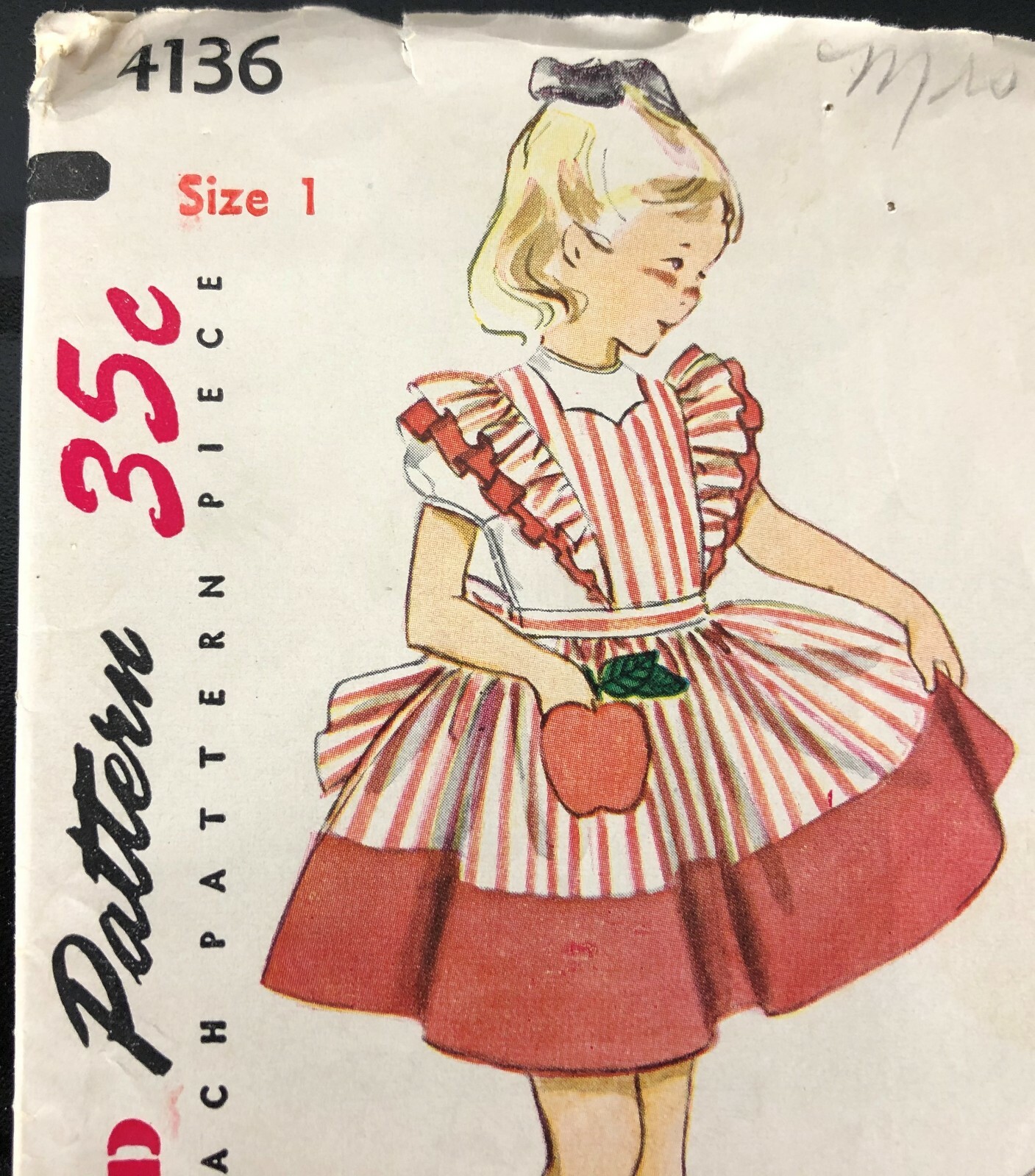 Vtg 1950s Simplicity Sewing Pattern 4136 Child Sz 1 Dress Apron Uc No Transfer Ebay